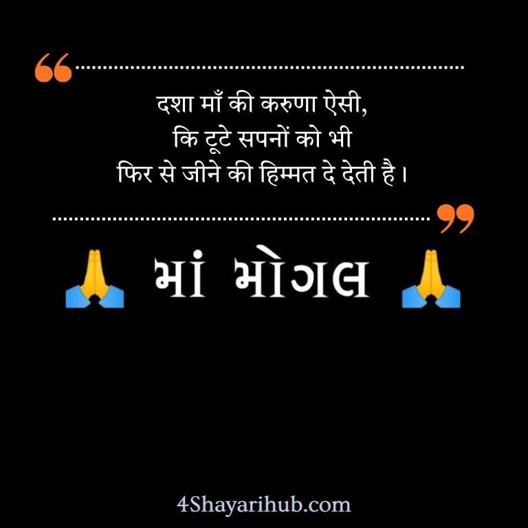 Mogal Maa का नाम लेते ही दिल में एक अलग ही सुकून उतर आता है… जैसे माँ अपनी गोद में बिठाकर सारे दर्द मिटा दे। जब ज़िंदगी में रास्ते उलझ जाते हैं, मन टूटने लगता है, या किसी सहारे की ज़रूरत होती है—तो Mogal Maa की याद ही हमारी सबसे बड़ी ताकत बन जाती है। इसलिए लोग Mogal Maa Shayari पढ़ते और शेयर करते हैं, क्योंकि हर लाइन में माँ की दया, शक्ति और कृपा का एहसास बस जाता है। ये शायरियाँ सिर्फ शब्द नहीं—माँ के आशीर्वाद की तरह दिल में उतरती हैं, विश्वास जगाती हैं और हर भक्त के मन में नई रोशनी भर देती हैं. यहाँ आपको ऐसी शायरियाँ मिलेंगी जो सच में दिल को छू जाएँगी, और माँ के दरबार की भक्ति को और गहरा कर देंगी।